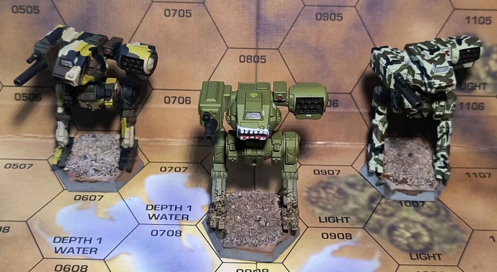 Delta Configuration is also meant to be used in C3 units, but this time is equipped with a C3 Slave unit instead of a Command Computer. It mimics the Prime by using a Rotary AC/5 as its primary gun but this time it is supported by a pair of Streak 6-tubes of SRM for massive close range punch. Once things get fairly close, the Charlie also has a trio of ER Small Lasers.