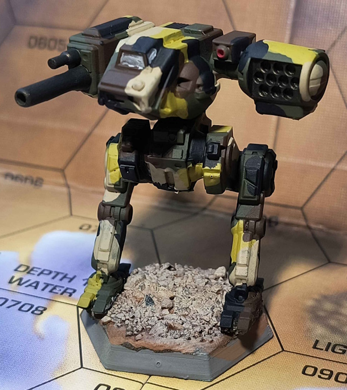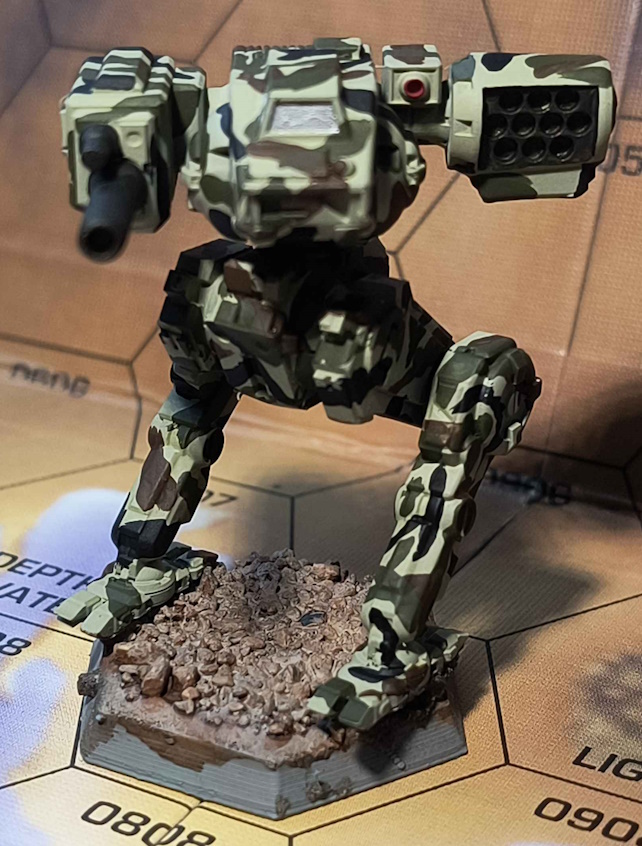 Charlie configuation was designed for the C3 units that were getting more common within the AFFC by the early 3060s. Meant to be used by commanders and not get in close quarters, the primary weapons on the Charlie are a pair of ER PPCs, each with a coaxial ER Small Laser, in the arms. The roomy torso fits the C3 Command Computer and a Beagle Active Probe. Extra protection is granted by an anti-missile system.